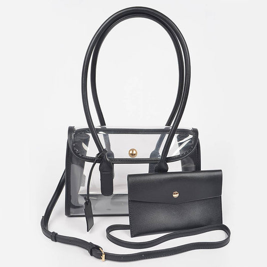 Aetherveil Clear Tote | Faux Leather Trimed Clear Bag