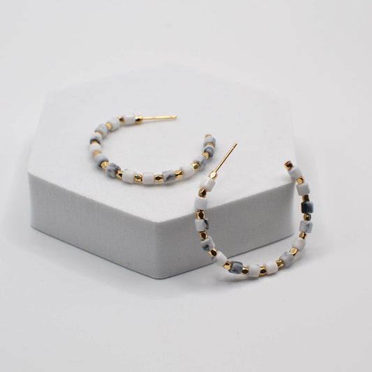 Barrel Semi-Precious Stone C Hoop Earrings
