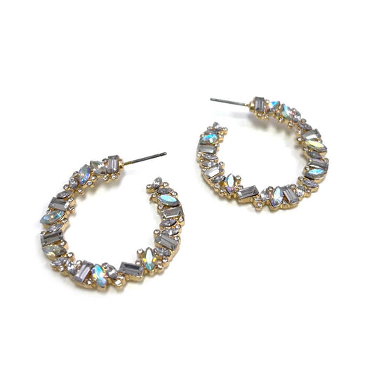 Baguette Stone Bead Wreath Hoop Post Earrings