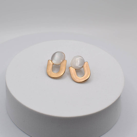 Boho Abalone Button Round U Shape Worn Plating Post Earrings