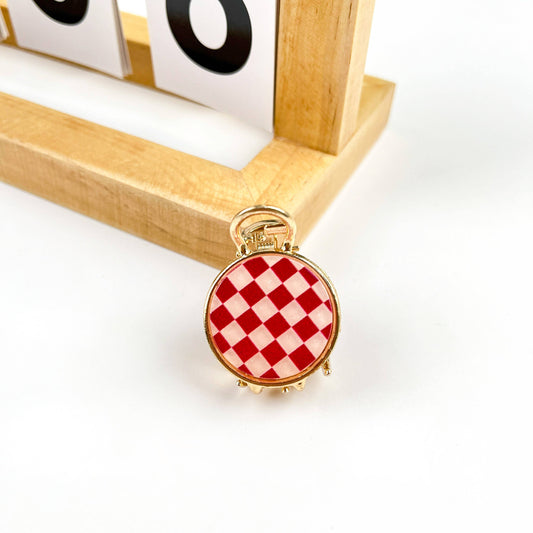 Checkerboard Round Mini Suitcase Hair Clip