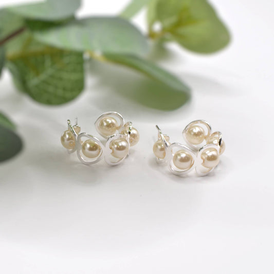 Open Heart Brass C-Cut Stud with Ivory Pearl Bead Earrings