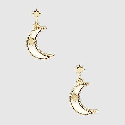Sunburst with Crescent Moon Mother of Pearl Post Earrings