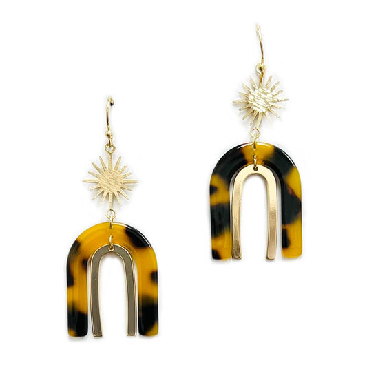 Sunburst Metal Top with Acetate Arch Boho Dangle Earrings