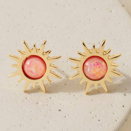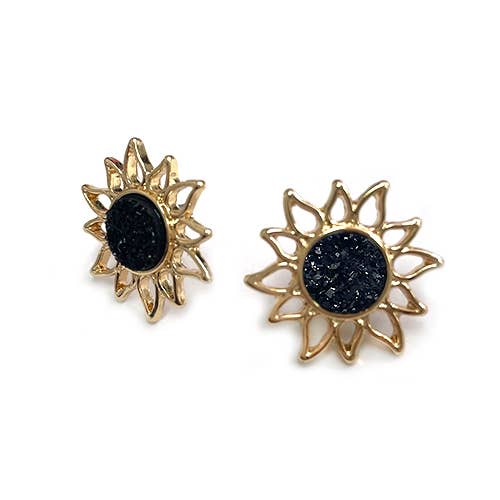 Resin Druzy Stone Sunburst Button Post Boho Vibe Earring