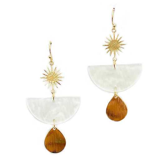 Sunburst Top with Half Moon Resin Acetate Dangle Earrings