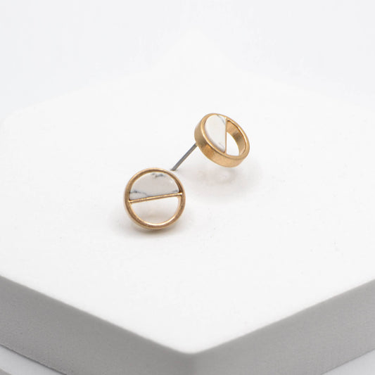 Howlite Stud Earrings Round Cut Brushed Button Earrings