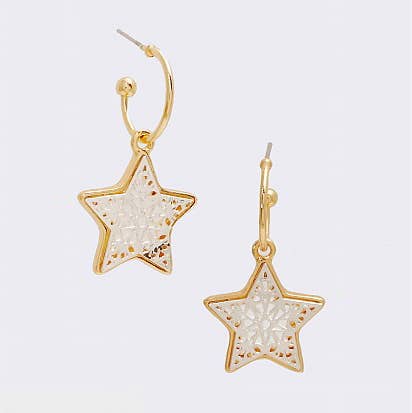 Star Filigree Drop C Hoop Two Tone Plating Earrings