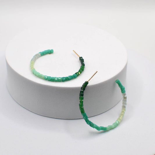 Glass Multi Bead C Hoop Earrings Light-weight Fashion Color
