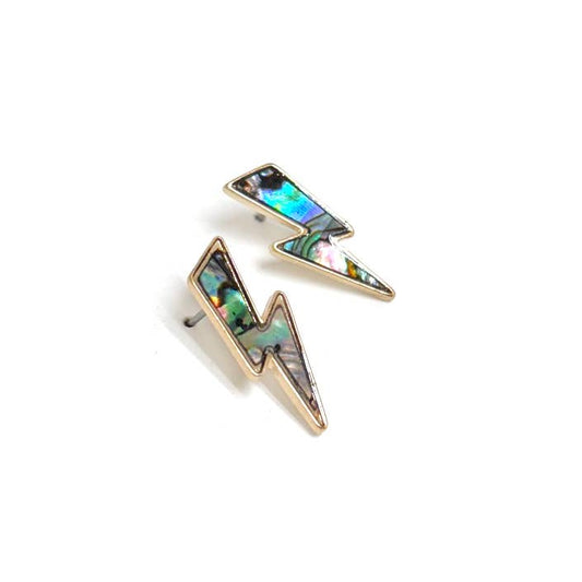 Lightning Bolt Thunderbolt Abalone Stud Earrings