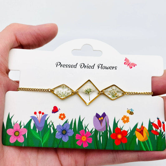 Dried Flowers Floral Geometric Charm Golden Bracelet