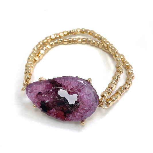 Resin Large Agate Pendant Gold Beaded Stretch Bracelet