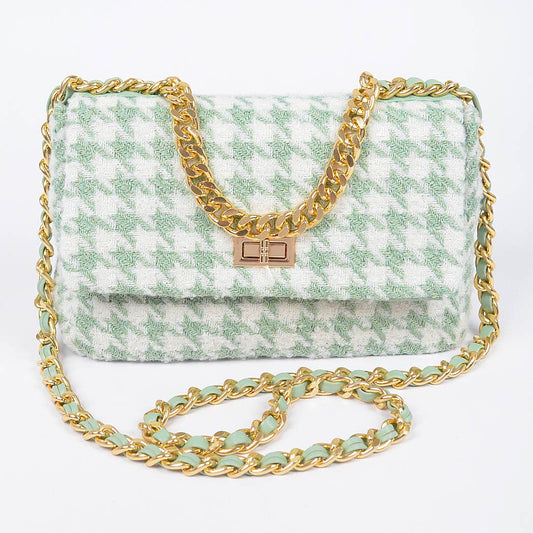 Quilted Tweed Houndstooth Chain Shoulder Bag