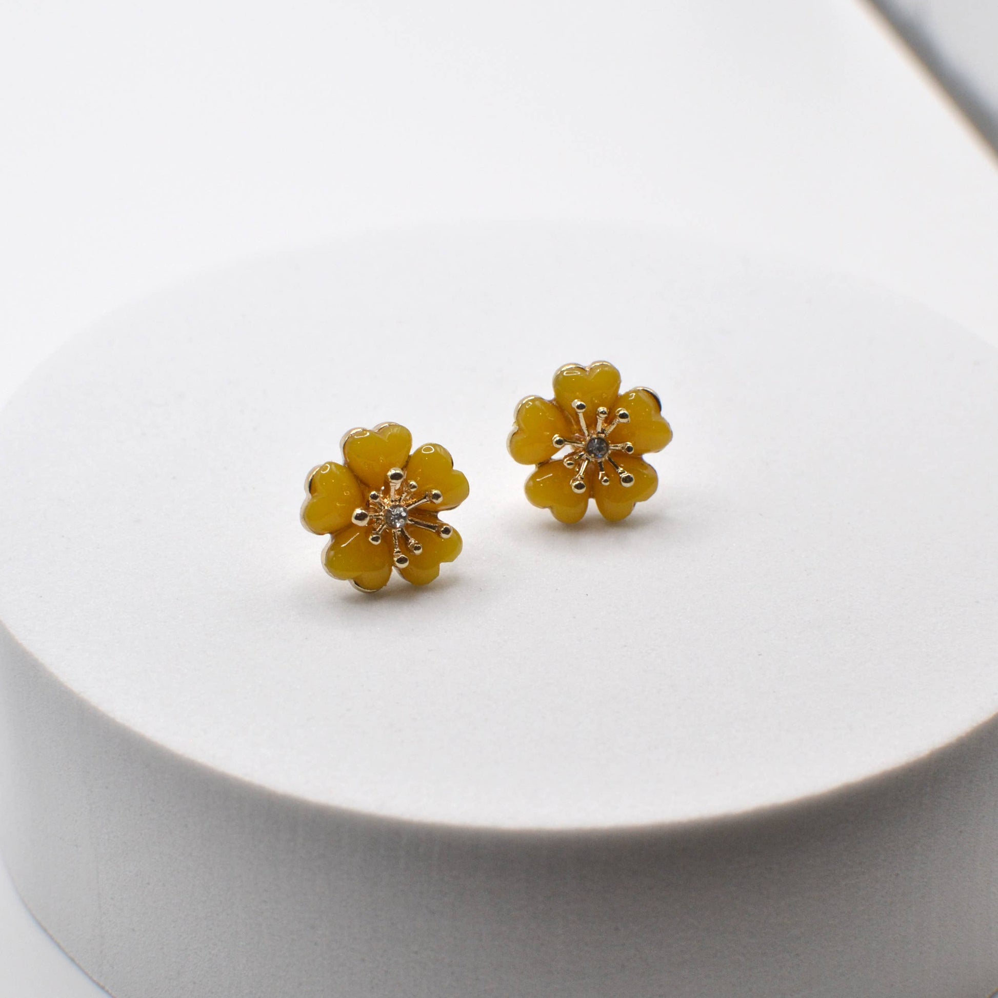 Step into a world of elegance with our Flower Color Epoxy Stud Earring. These enchanting earrings, designed to evoke the beauty of blooming flowers, are crafted from durable 18k gold plated brass, ensuring they are as lasting as your love for them. 🌸